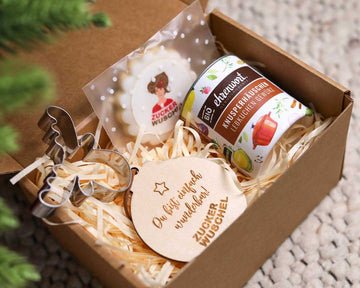 Bei Zuckerwuschel entstehen Weihnachtsgeschenke, die in Erinnerung bleiben: liebevoll verpackte Geschenksets mit Bio-Gewürzen, Ausstechern und personalisierten Anhängern, graviert mit deinem Firmenlogo.