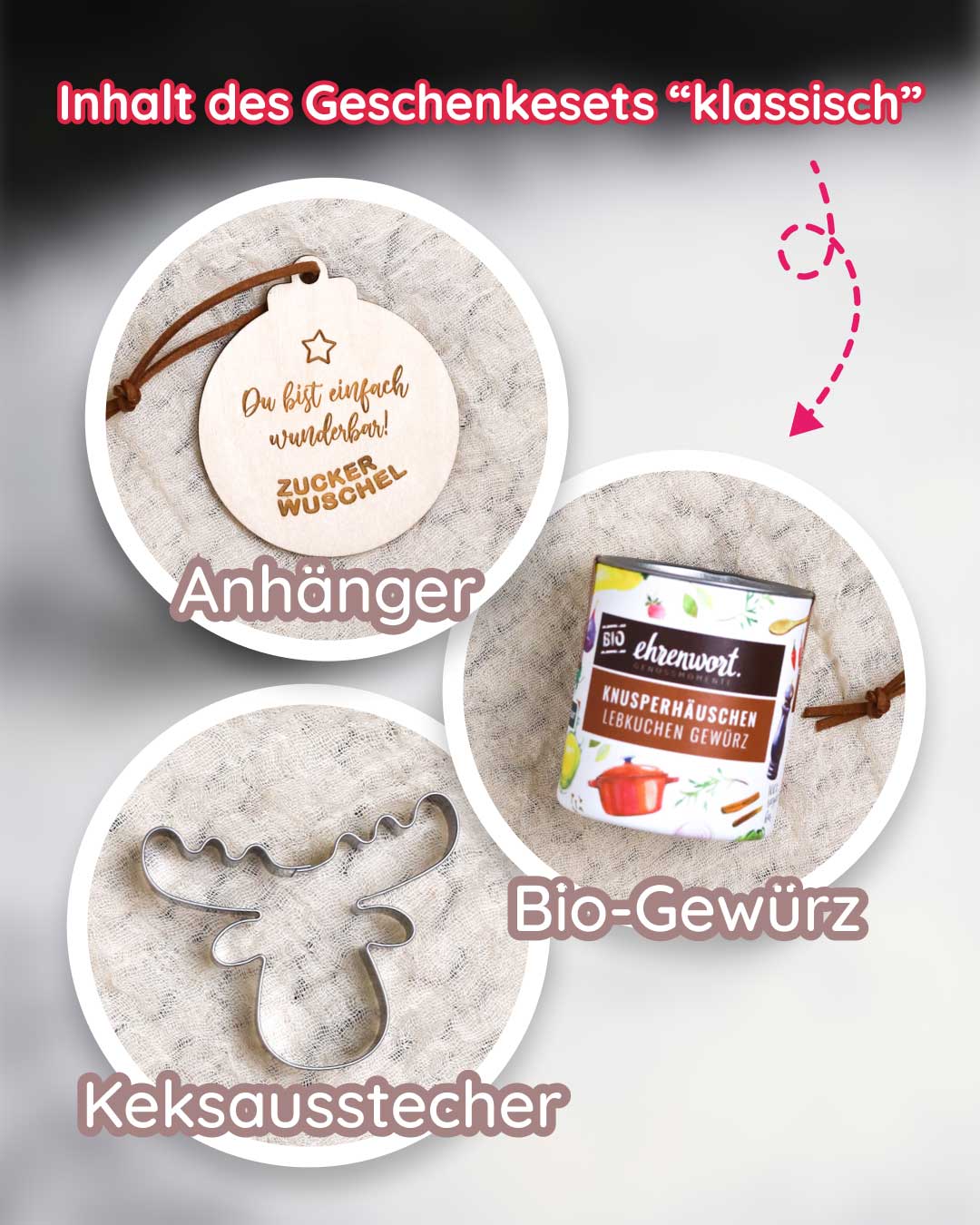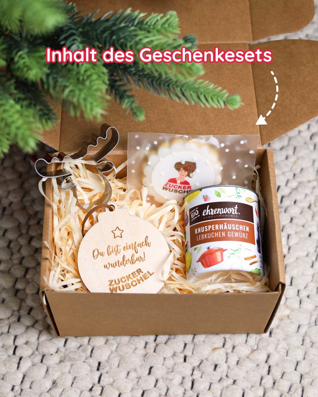 Bei Zuckerwuschel entstehen Weihnachtsgeschenke, die in Erinnerung bleiben: liebevoll verpackte Geschenksets mit Bio-Gewürzen, Ausstechern und personalisierten Anhängern, graviert mit deinem Firmenlogo.