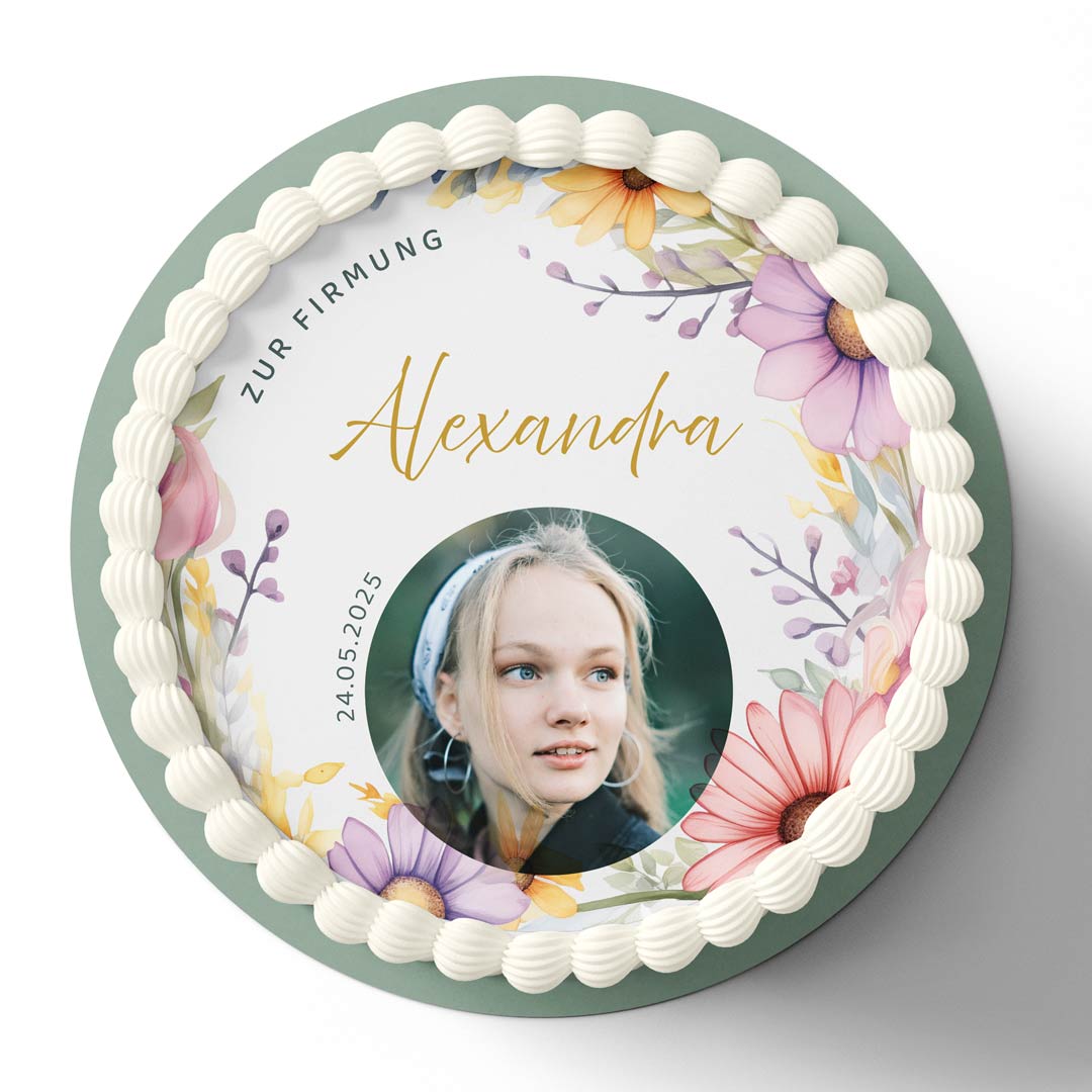 Foto Tortenaufleger Kommunion Taufe "Floral"