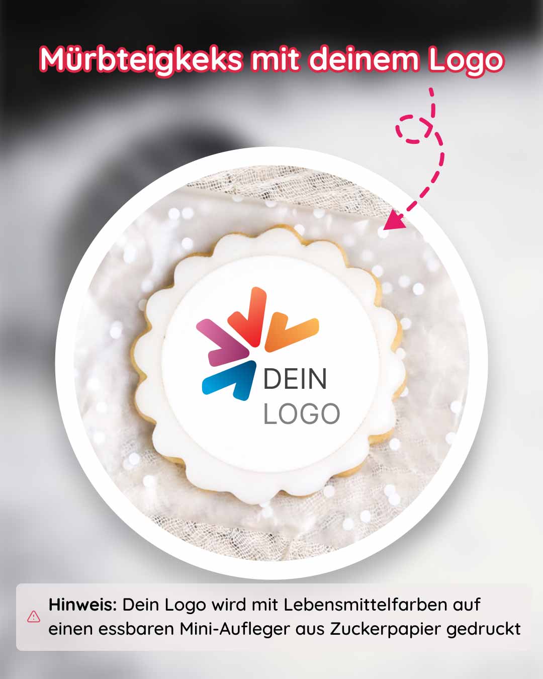 - 1x handgebackener Mürbteigkeks mit essbarem Logo-Aufleger